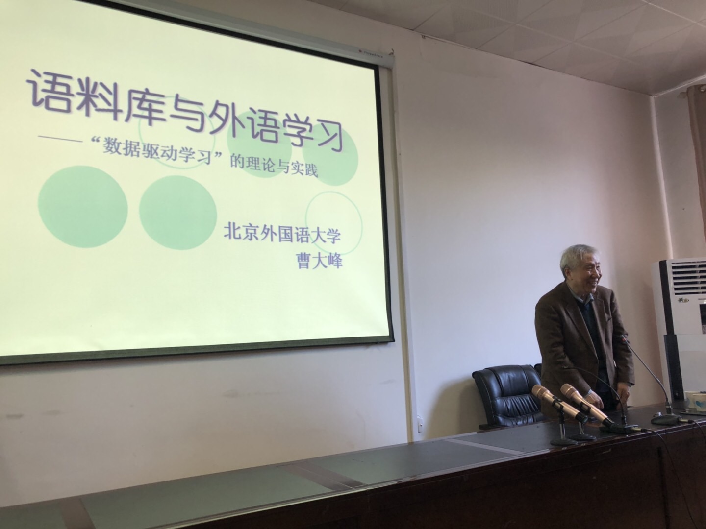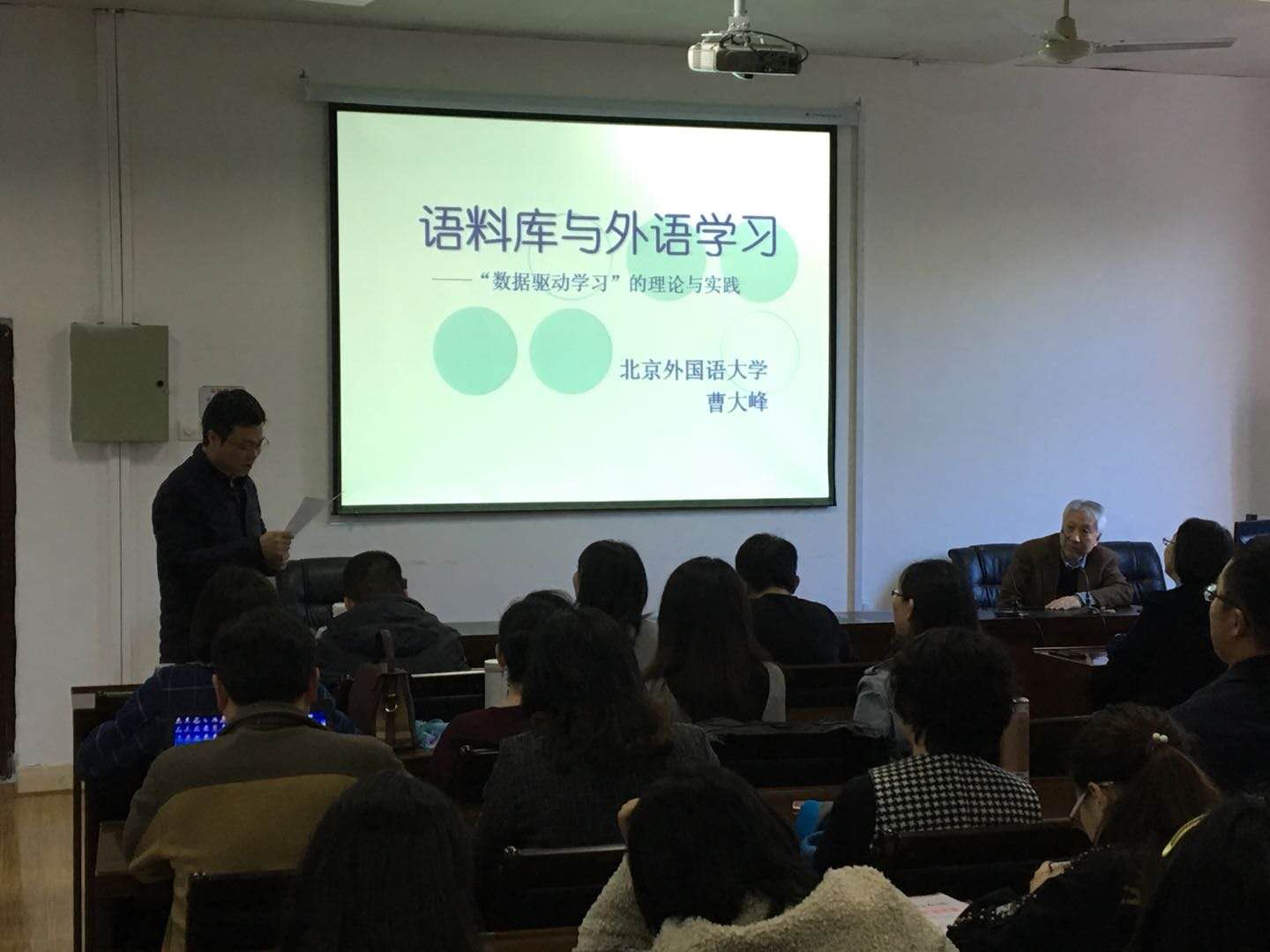 2019年4月1日下午,北京外国语大学教授、博士生导师曹大峰应邀设席威廉希尔体育,为我院师生作了题为“语料库与外语学习——‘数据驱动学习’”的学术报告。讲座由副院长曾小荣主持。