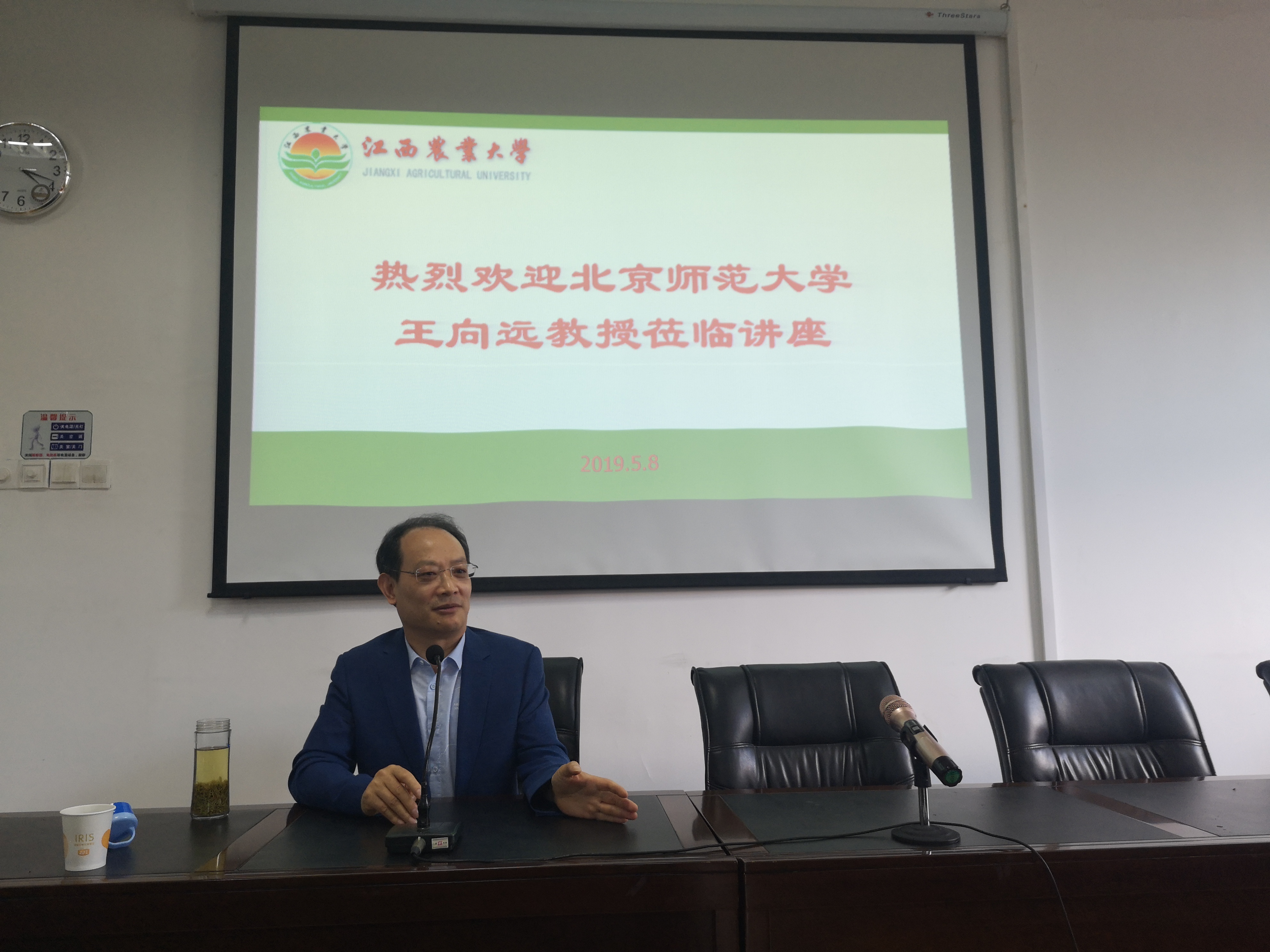 会上,王向远教授讲解了日本文学中的国民思想,并就和歌、俳句中使用的语言介绍了文学中的美学意识,指出美学是不同国家共同趣味的互相认可。王教授指出外语系学生在学习外语同时,还应熟悉目的语国家的文化和审美观,这样方可促进外语的学习与研究。会后,王教授同在场师生讨论了茶道中的美学与佛教思想、中日韩三国文学中的美学意识等话题。通过王教授的讲解进一步拓宽了师生视野,为外语学习与研究指出了一条新路径。