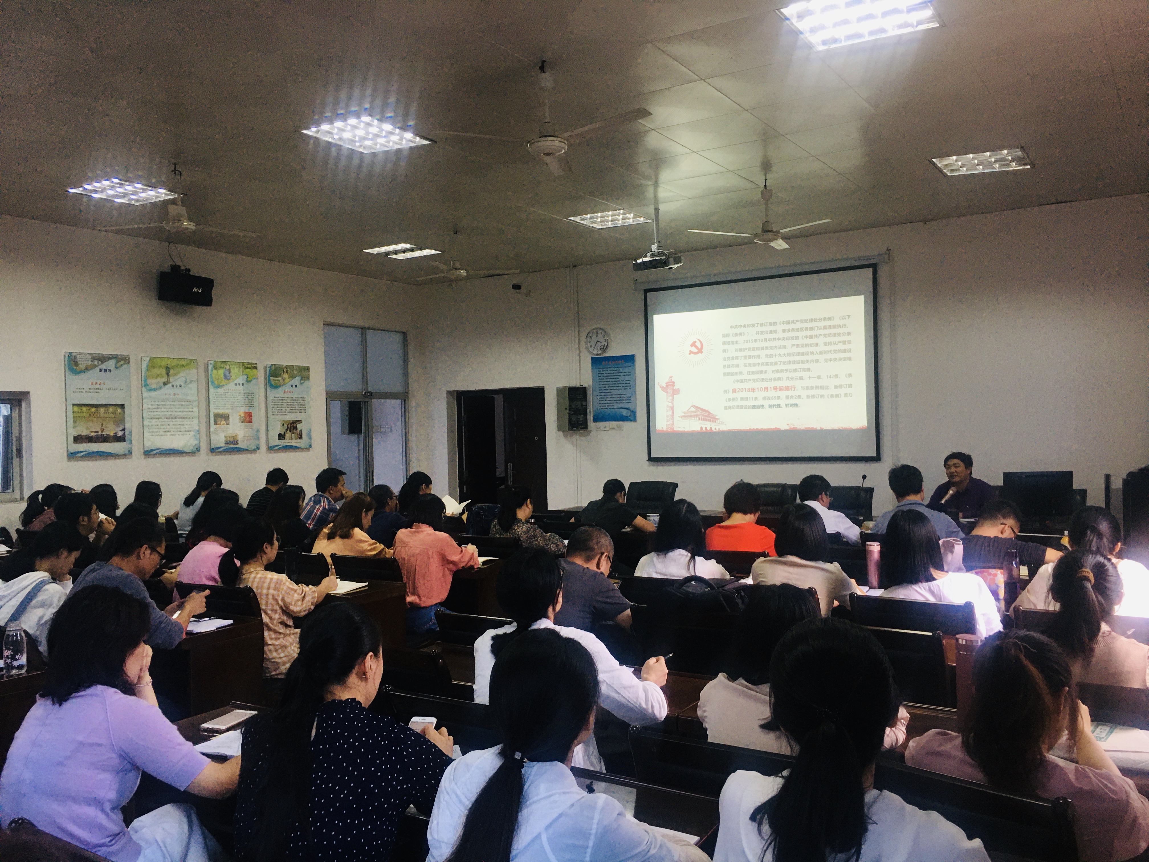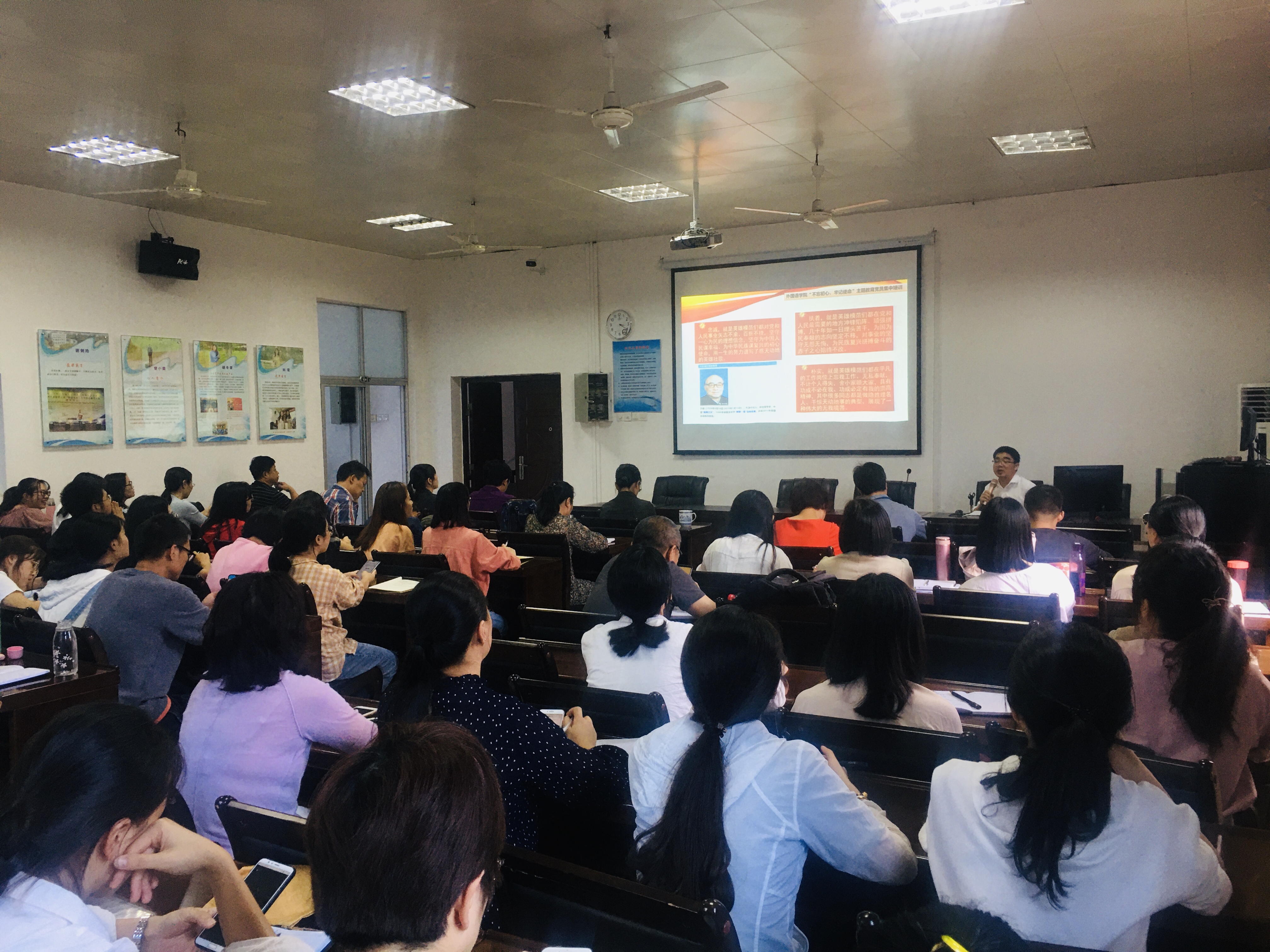 2019年10月8日下午,威廉希尔体育根据主题教育培训安排,开展了“不忘初心,牢记使命”主题教育党员培训。教工支部和学生支部参加了培训,培训由党委书记胡永华和党委副书记罗志华授课。