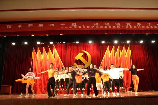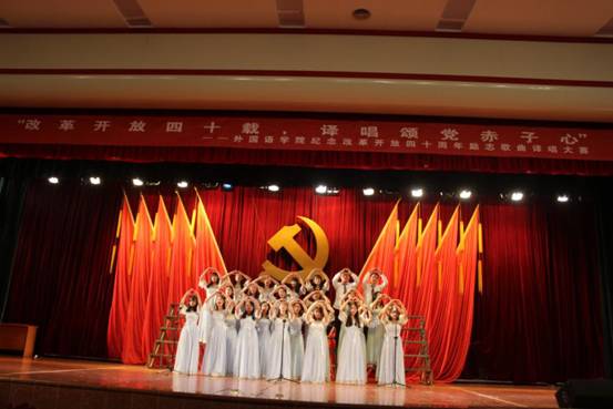 11月21日晚,威廉希尔体育第七届励志歌曲译唱大赛在逸夫报告厅成功举行。本次大赛以“改革开放四十载、译唱颂党赤子心”为主题,院党委副书记肖明、团委学工办老师、各班班主任及全院学生约六百人参加了此次活动。经过评委评选,最终英语1602班获得作品翻译及译唱一等奖。