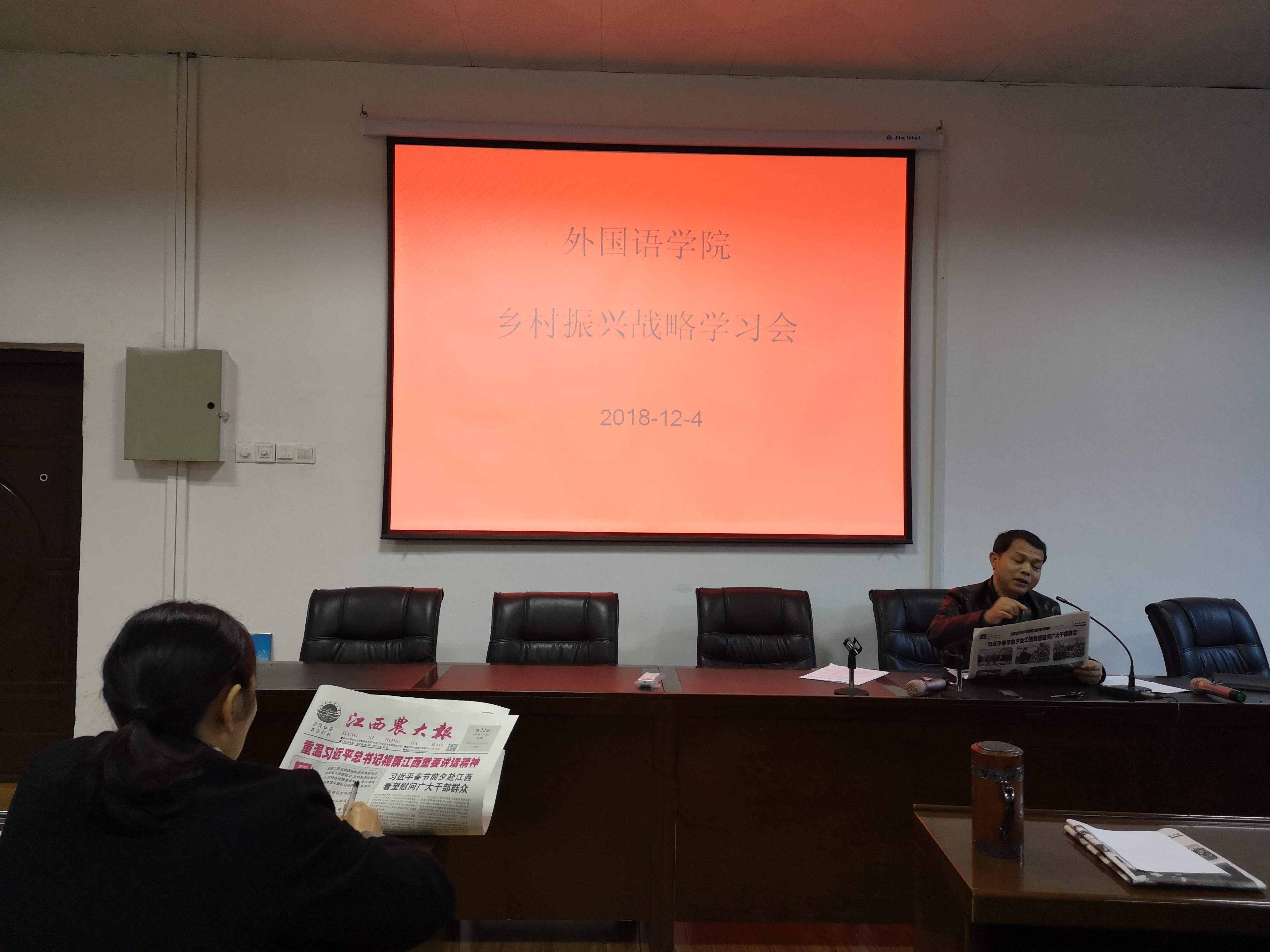 12月4日下午,威廉希尔体育召开以乡村振兴战略为主题的学习会。会议由党委书记肖友群主持,外语院全体教职工参加。