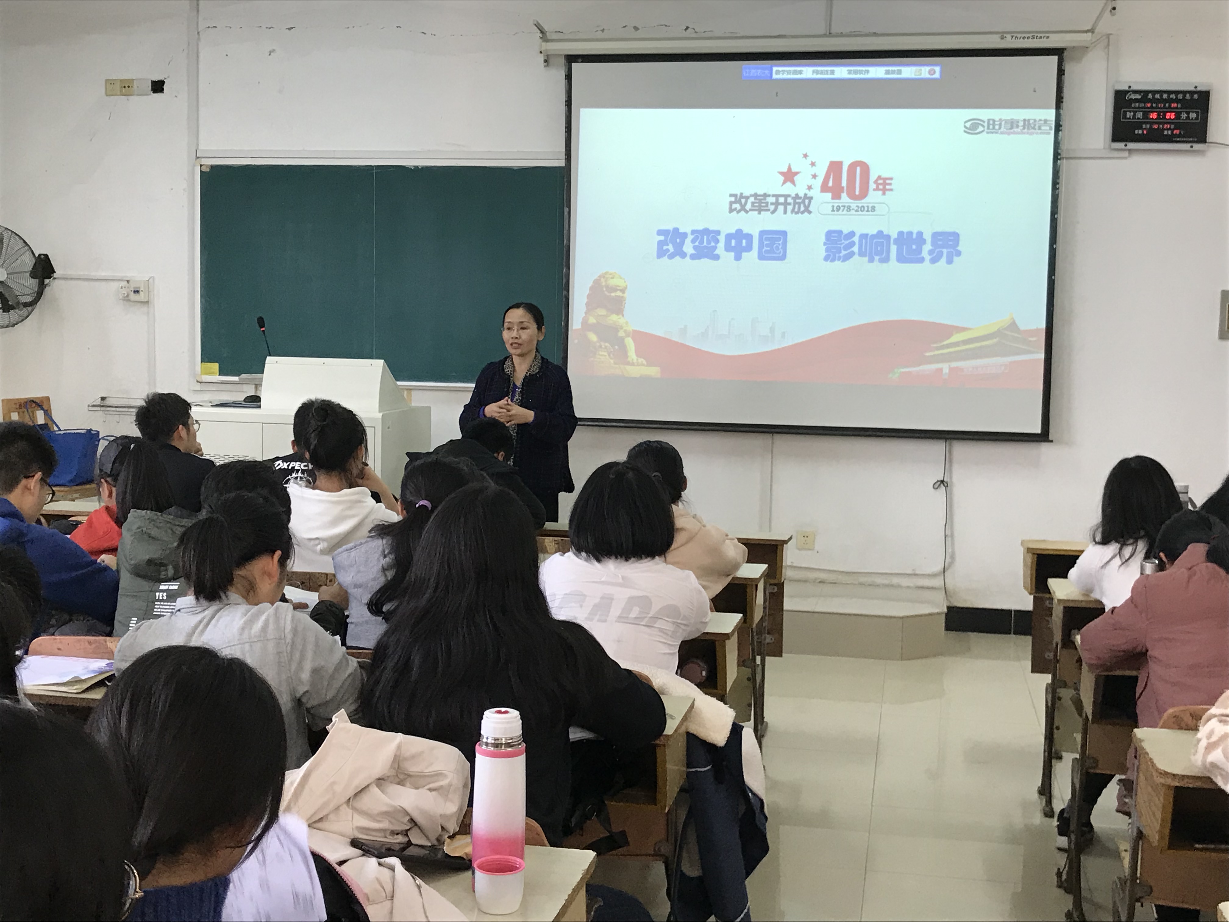 肖友群书记主讲的是改革开放40年来对中国和世界的影响,吴伟萍院长讲授的是今年9月份的全国教育大会精神。重点讲授和学习新时代党的建设面临的新形势新任务、总要求和战略部署、坚定理想信念是青年人思想建设的首要任务等内容,并不时互动讨论。